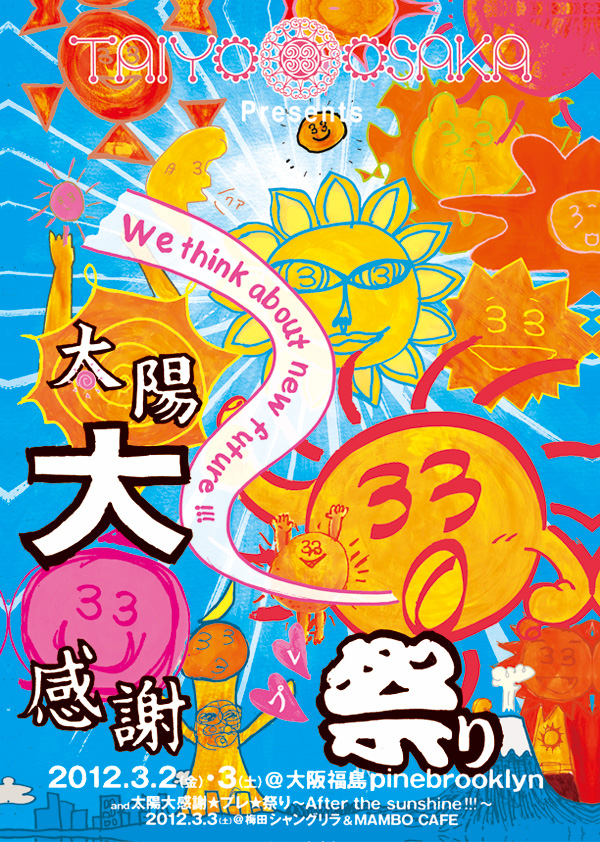 元あふりらんぽのPIKAが、震災後に立ち上げたプロジェクト、「TAIYO33OSAKA」による主催の2日間のお祭りに参加させていただきます。