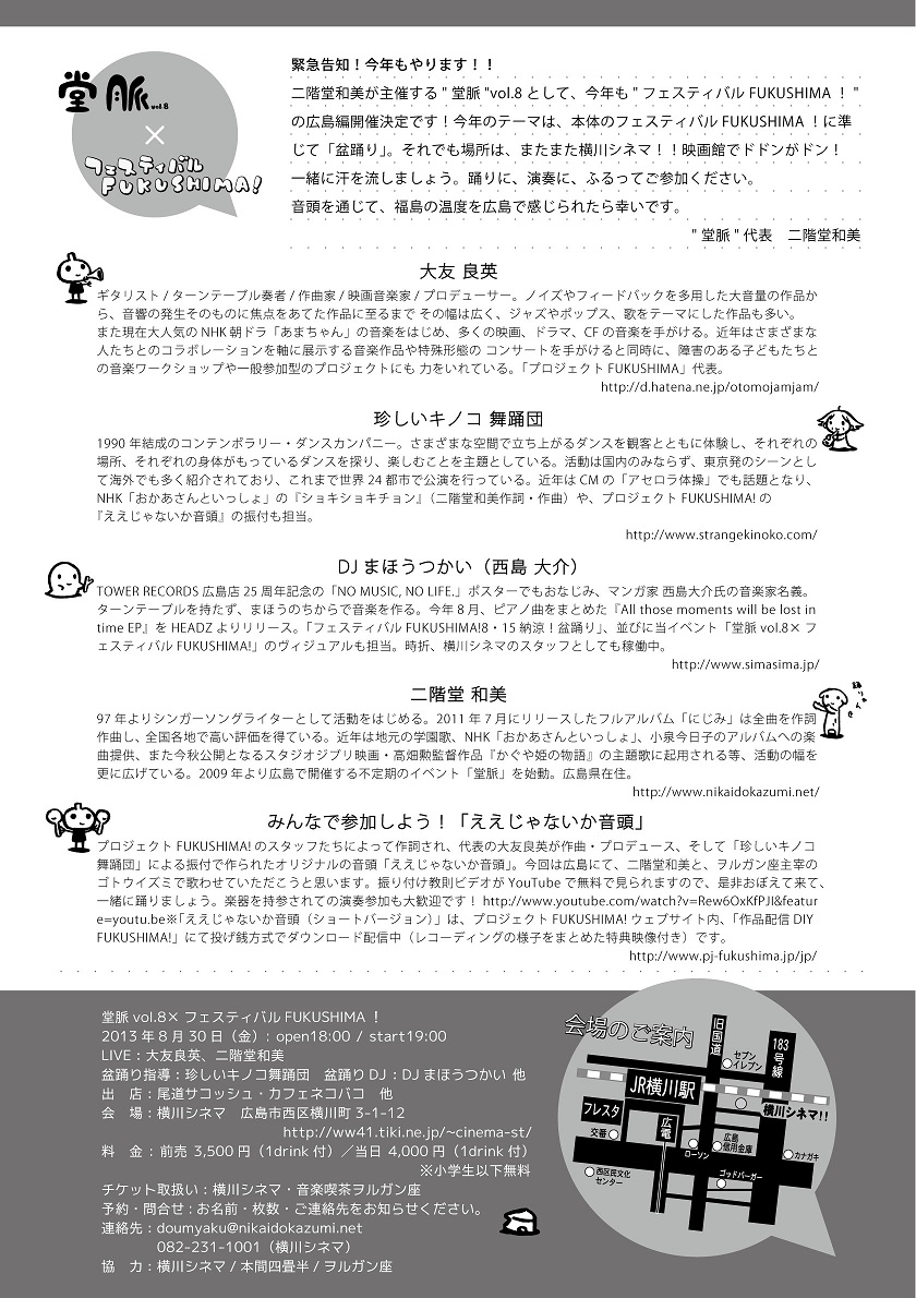 14日は大阪、15日はニカさんの地元・広島にもお邪魔しますので